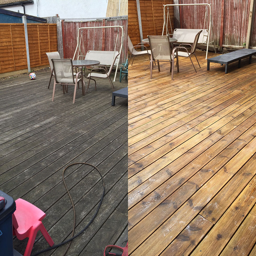 Our decking cleaning service starts with a pre detergent wood soap application followed by a low Pressure fan nozzle wash going with the grain of the wood. A full wash down and if required a chemical application is applied to help with any remaining green stains.